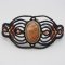 Voici une belle manchette en micro-macramé noire tissée avec du fil 0.75 mm. Une belle pierre de soleil sertie de laiton est mise à l'honneur. Le tissage est agrémenté de perles en laiton de 2 mm et des perles en pierre de soleil. Du fil cuivré a également été ajouté pour faire un rappel de couleur. Bracelet ajustable grâce à ses cordons coulissants.