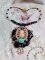 J’ai positionné sur une base en dentelle Noire également très ancienne un cabochon représentant une femme en corsage avec des fleurs.