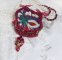 Le tour du motif est agrémenté de perles rondes nacrées en verre, d’une dentelle de rocailles avec des dentelles organza.