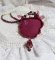 L’arrière est en suédine bordeaux avec un fermoir mousqueton et une chaînette d’extension avec cœur en laiton plaqué Or 24 carats.