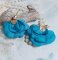 Une belle saison avec toutes ces fleurs, c’est pourquoi j’ai voulu les mettre en valeur en créant ces boucles avec des pétales de roses en tissu dans les tons d’un Bleu Turquoise.