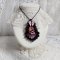 En haut du motif j’ai mis en forme une dentelle très fine à laquelle j’ai associé des fleurs boutons de roses sauvages en résine et une petite clochette Noire en verre.